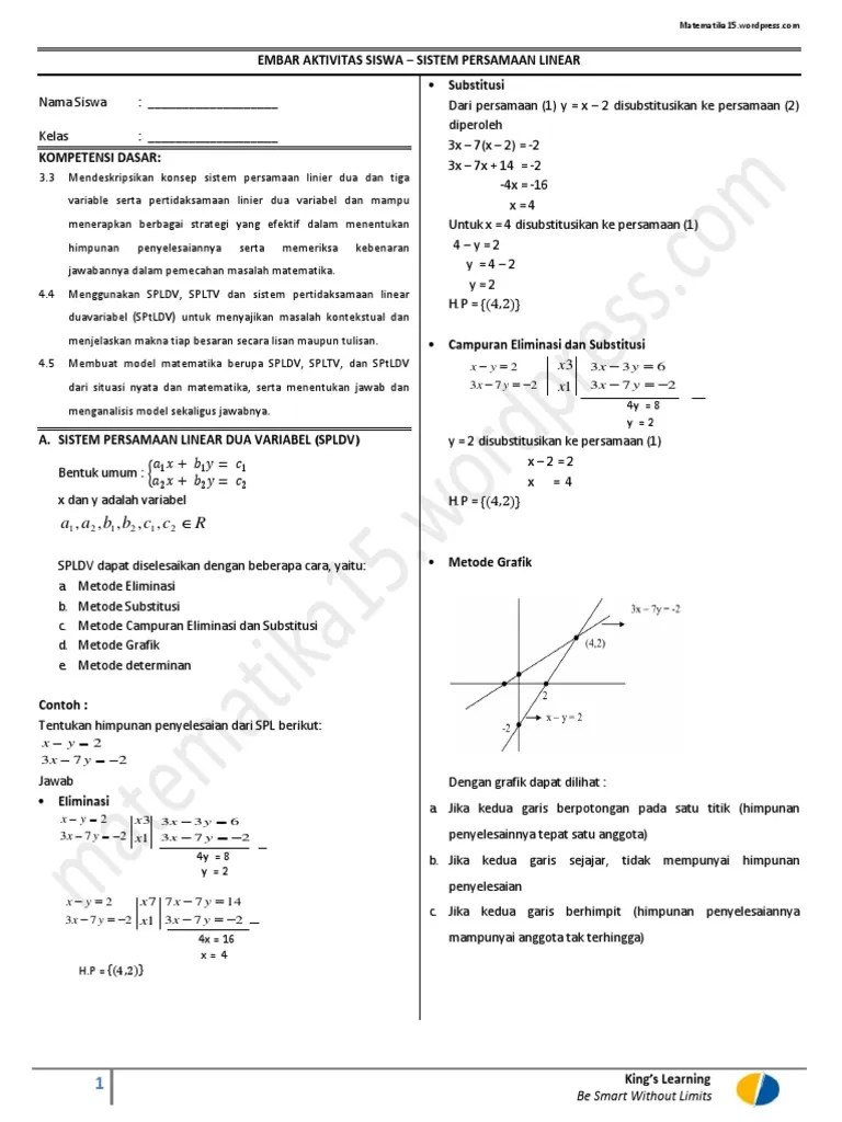 Pembahasan buku matematika peminatan kelas x bab 1 lks 4 youtube. Nah selanjutnya kita selesaikan menggunakan salah satu metode penyelesaian spltv. Contoh soal matriks dan jawabannya kelas 11 . Pasangan berurutan (x0 , y , z0 ) disebut penyelesaian dari sistem persamaan linear . 1 tentukan penyelesaian dari spltv dengan substitusi.